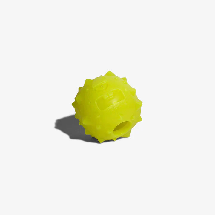 Rob the microbe is a throw dog toy with a treat dispensing bottom. This dog toy floats and has an erratic bounce which makes it perfect for long hours of fun at home or at the pool. The irregular surface helps clean your dog's teeth.